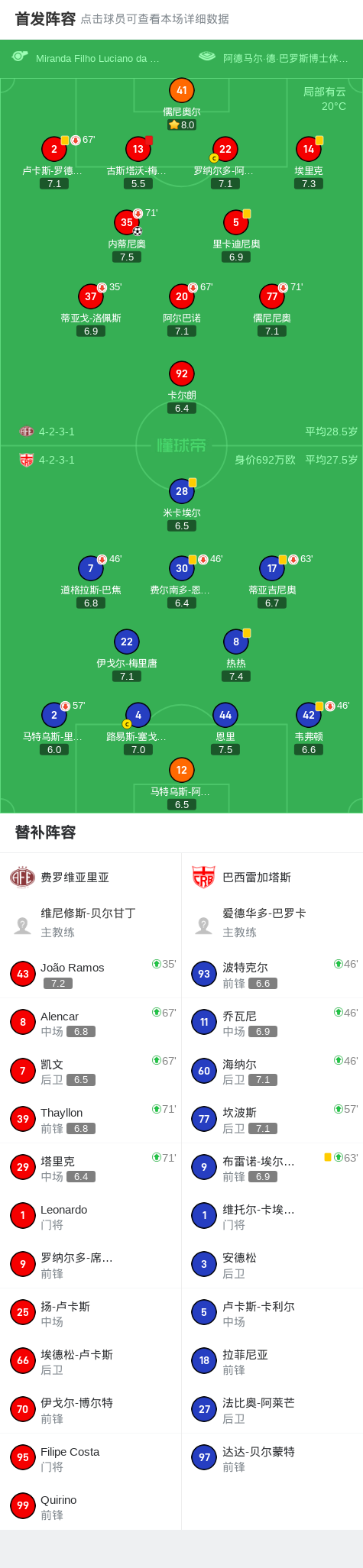 费罗维亚里亚1-0巴西雷加塔斯,内蒂尼奥助球队取胜