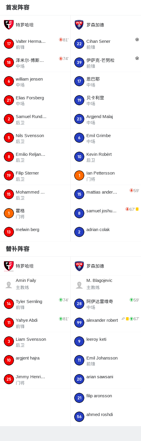 北京时间6月22日,瑞典足球乙级联赛南部第14轮,特罗尔海坦主场迎战罗森加德。比赛中,罗森加德凭借伊萨克-芒努松的进球取得领先,随后Cihan Sener再入一球锁定胜局。最终,特罗尔海坦主场0-2不敌罗森加德。