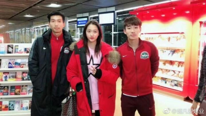 昨晚的上海浦东机场非常热闹,两支结束了在海外阶段性冬训的中超球队--河南建业和上海绿地申花相继回国并抵达浦东机场,除此之外,还有知名曼联球迷鹿晗的女友、艺人关晓彤也出现在了浦东机场。建业队两名球员在机场偶遇关晓彤并留影纪念。