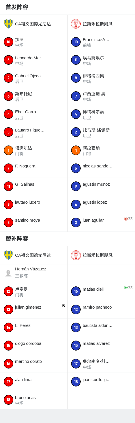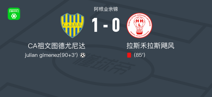 CA祖文图德尤尼达1-0拉斯禾拉斯飓风,julian gimenez制胜