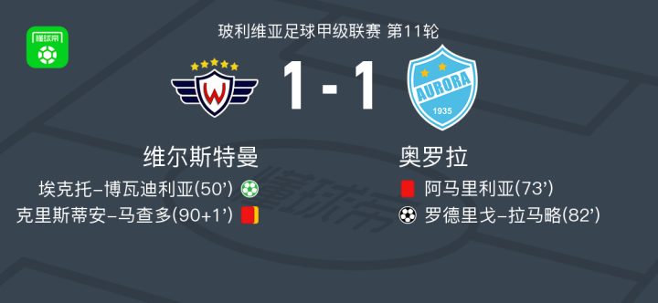 维尔斯特曼1-1奥罗拉,埃克托-博瓦迪利亚破僵,罗德里戈-拉马略扳平