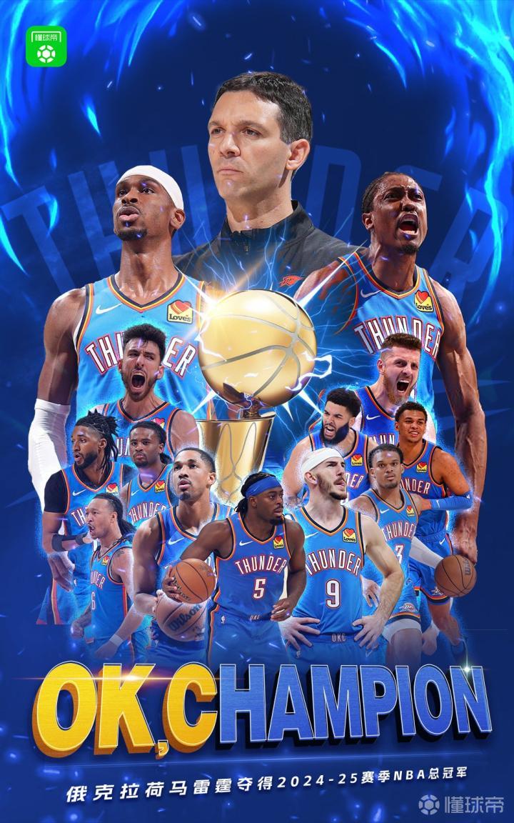 北京时间今日,在NBA总决赛G7中,雷霆队在主场103-91击败了步行者队,大比分4-3夺得了总冠军。