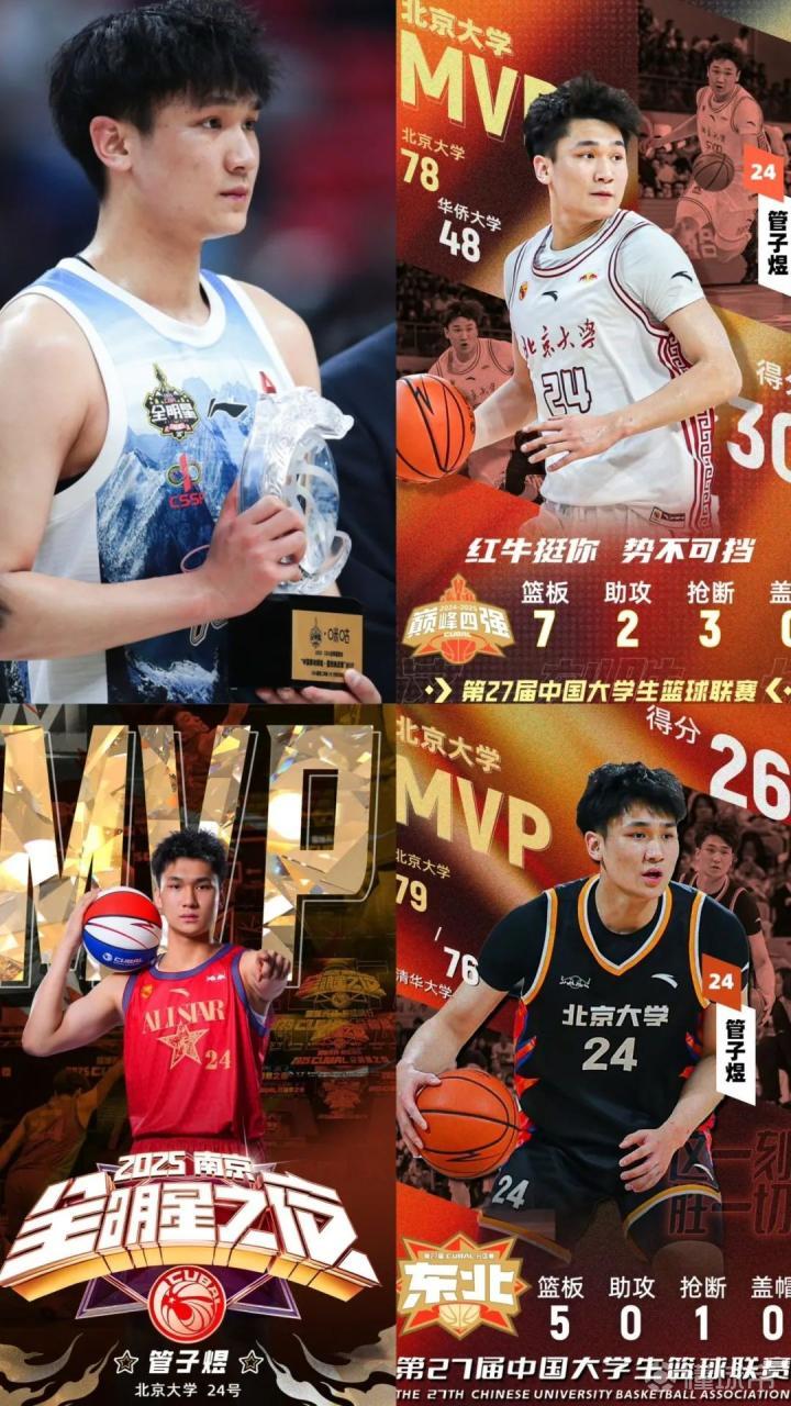 2025年,管子煜率领北京大学男篮在CUBAL决赛以78-48大胜华侨大学,同时以30分7篮板获得FMVP。