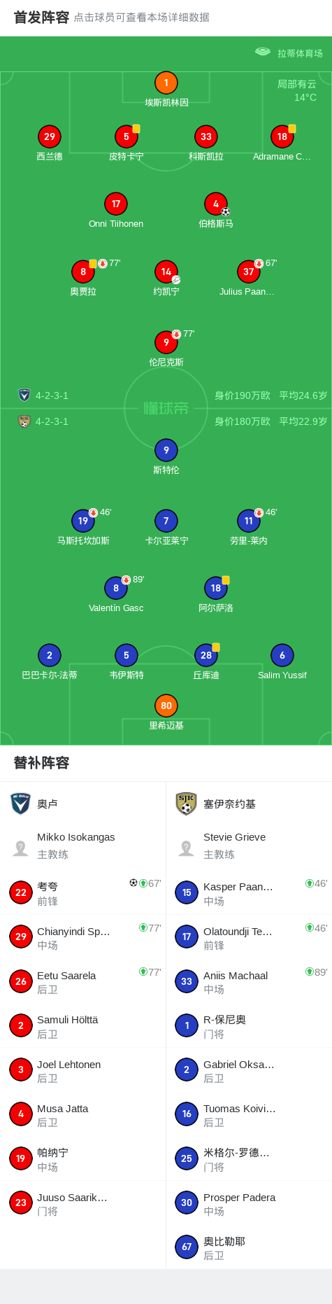 第6分钟,奥卢球员约凯宁助攻伯格斯马打入一球。