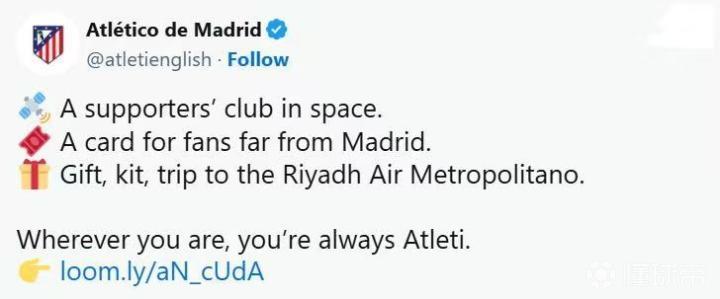马竞利用其世俱杯亮相展现雄心和创造力的另一个迹象是他们新推出的“首个外太空球迷俱乐部”,这是一个国际性的“红白马竞”会员计划,他们可以在赛事期间进行推广。该球迷俱乐部的官方基地设在大熊座的一颗恒星上,NASA设计师蒂姆-加尼翁帮助设计了会员可以收到的徽章。