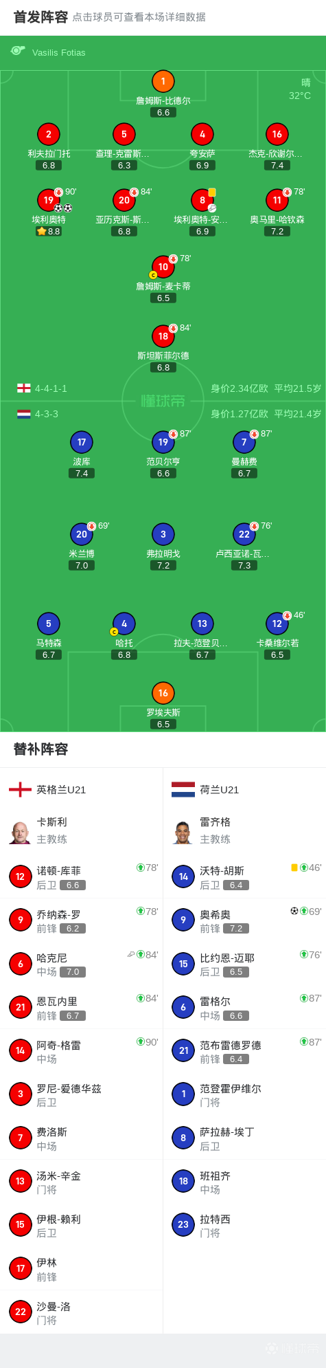 第72分钟,奥希奥左路反击直接射门得分扳平比分,荷兰1-1英格兰