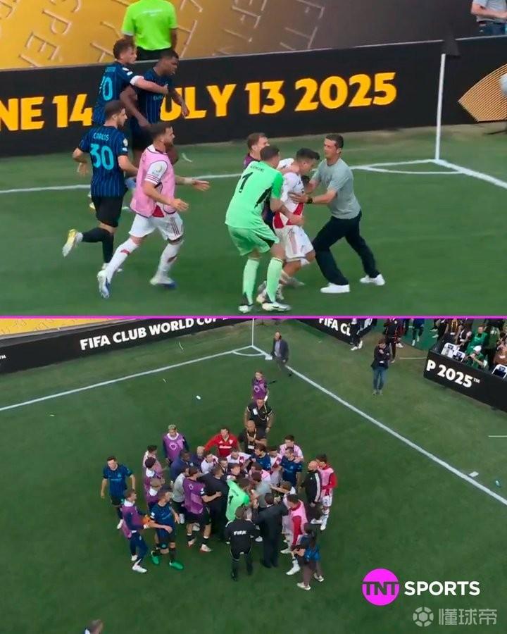 本场比赛,当终场哨响时,阿库尼亚直冲邓弗里斯试图攻击,邓弗里斯在3名国米队友护送下加速跑向球员通道躲避。阿库尼亚随后被6名工作人员和球员围堵,最终被按倒在草坪上。期间双方球员爆发20人规模推搡混战,河床球迷还向邓弗里斯投掷了塑料瓶。