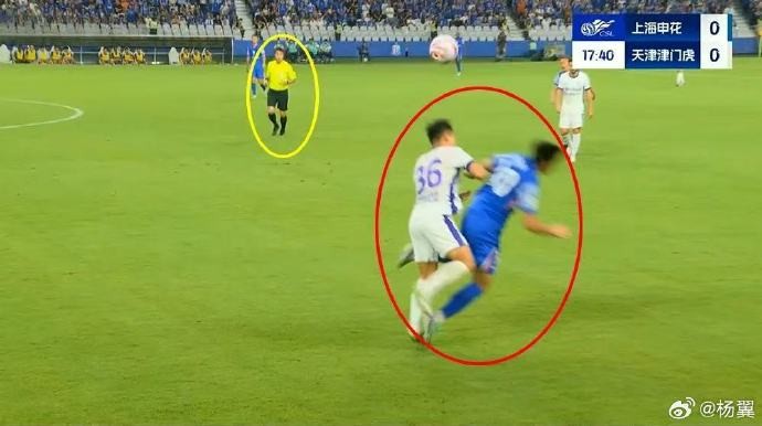 上海广播电视台五星体育制片人杨翼在微博上分享了自己对天津津门虎球员郭皓犯规动作的看法。同时他也对上海申花对阵天津津门虎一役当值主裁金京元的判罚尺度感到“非常疑惑”。