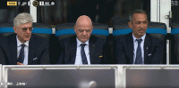 第16分钟,镜头给到场边,温格和国际足联主席因凡蒂诺看台观战