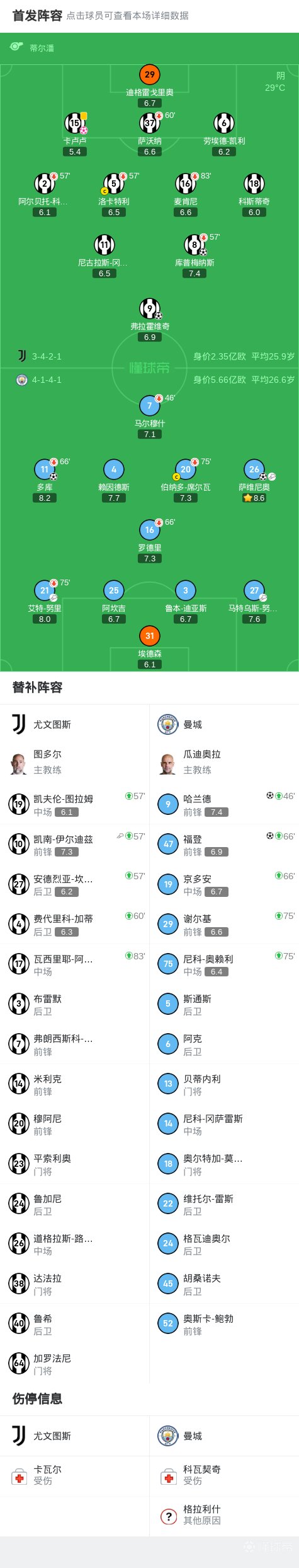 第26分钟,努内斯横传门前,卡卢卢包抄自摆乌龙,曼城2-1再度领先尤文