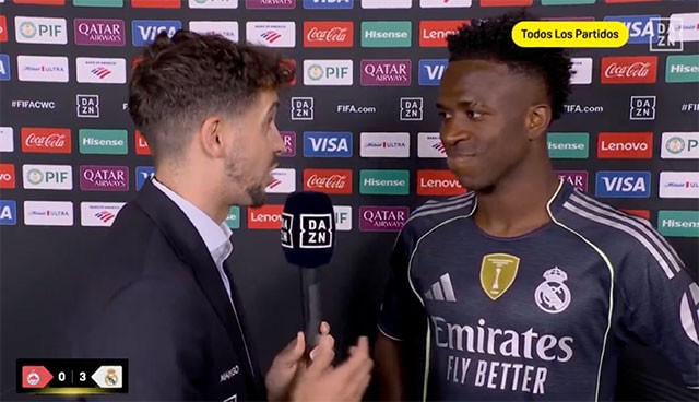 以一传一射帮助皇马在世俱杯3-0轻取萨尔茨堡红牛拿到小组第一后,维尼修斯接受了DAZN的采访。