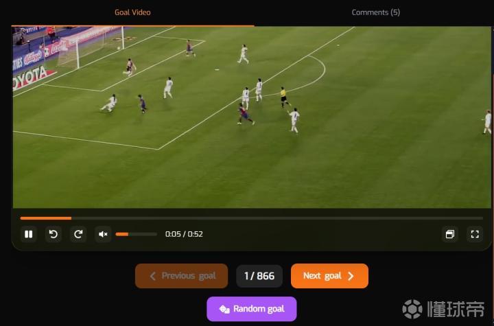 值得一提的是,在每个视频下方都有一个颇为有趣的按钮“Random goal”,点击这个按钮便可以随机跳转到梅西的某一个进球画面。