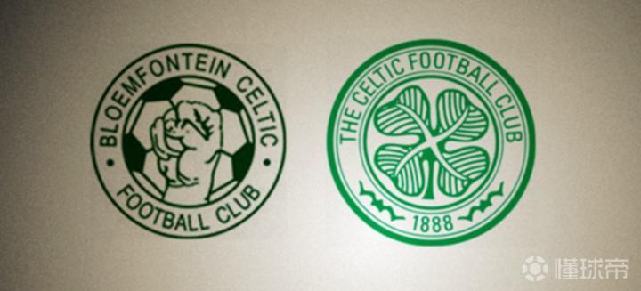 图片左侧是布隆方丹凯尔特人,右侧为苏超劲旅凯尔特人。布隆方丹凯尔特人是南非的一家足球俱乐部,其主场自由州球场也是2010年南非世界杯的球场。两支球队的队徽均以圆环为图案,内侧的设计有所不同,环上面的排版布局都是如出一辙,两支球队的颜色都为绿色。NBA著名球队凯尔特人队的队徽也是圆环形状,中间部位的图案则是用一个人来代替。