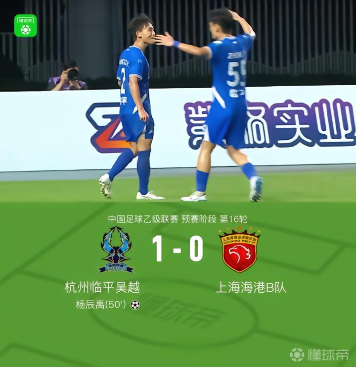 杭州临平吴越1-0上海海港B队,杨辰禹一剑封喉