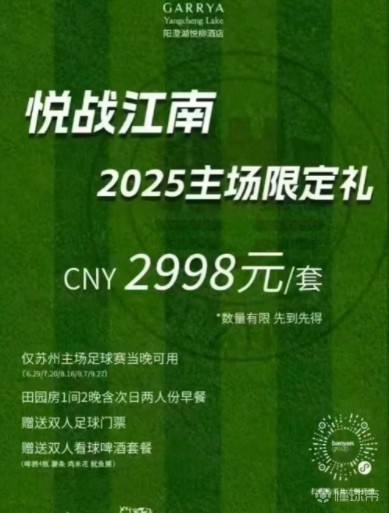 苏超门票加入各种套餐:五星酒店订房、买家具满1万元送票