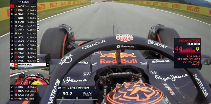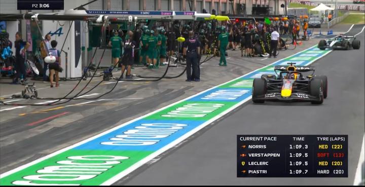 二练进行至20分钟,拉塞尔&维斯塔潘率先完成软胎飞驰圈,但都稍稍落后于诺里斯之前的中性胎成绩;