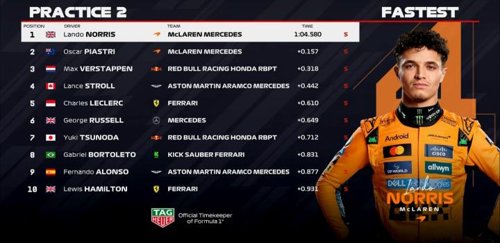 第1-第5:诺里斯、皮亚斯特里、维斯塔潘、斯特罗尔、勒克莱尔