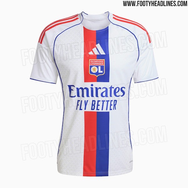 知名足球装备网站《footyheadlines》近日曝光了里昂2025-26赛季主场球衣谍照。