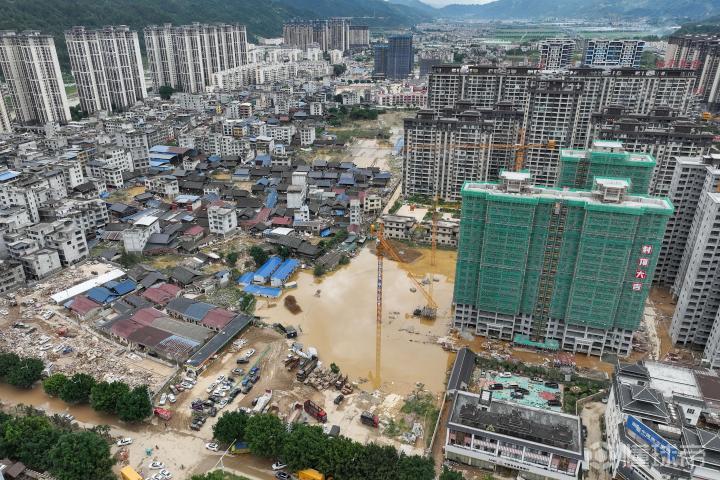 6月24日,贵州省黔东南州榕江县遭遇超30年一遇的特大洪水,受持续强降雨及上游来水叠加影响,县内平永河、寨蒿河、都柳江水位快速上涨,洪峰流量最高达9650立方米每秒,超保证水位3.5米。此次洪水导致县城多处低洼地带被淹,包括老城区、新城区多个居民区及当地最大商场,部分区域积水深度超过1米。
