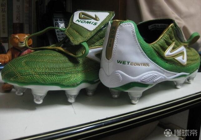 在同年的亚洲杯上,科威尔还是使用了绿色的nomis glove足球鞋,这款鞋是采用的wet control技术,雨天配置,鞋面是毛面,其实这也揭开nomis足球鞋的奥秘,那就是nomis的足球鞋,所有款式都是一分为二,上文中sametime的就是这个意思,同样鞋款,有wetcontrol版和(dry)dualcontrol版。glove就是spark的wet版本。也真是因为wet control版的glove鞋面皮质类似蜥蜴,所有nomis的wet本版一直被称为大蜥蜴。