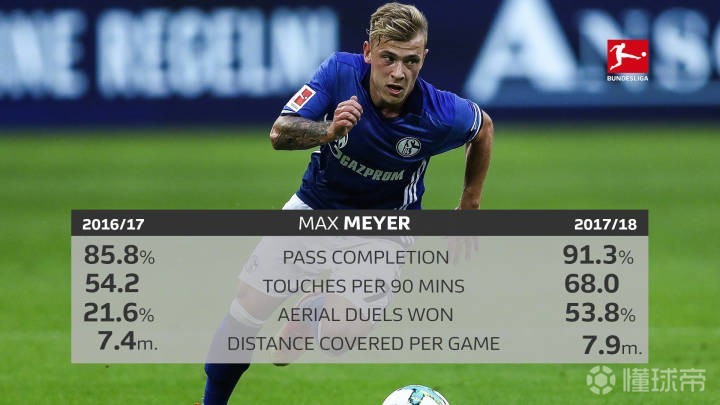 2017年在新帅麾下,迈尔完成了从10号位到6号位的华丽转变,有不少人质疑为何这么年轻就前腰后置,他用数据证明了一切。不是只有进球才展现能力,后腰一样可以拯救比赛。