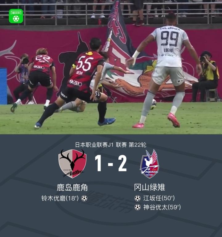 北京时间6月28日,日本职业联赛J1第22轮,鹿岛鹿角坐镇主场迎战冈山绿雉。比赛第18分钟,小池龙太送出助攻,铃木优磨为鹿岛鹿角首开纪录。第50分钟,卢康为冈山绿雉送出助攻,江坂任破门扳平比分。第59分钟,江坂任助攻神谷优太打入反超进球。最终,冈山绿雉以2比1逆转战胜鹿岛鹿角。