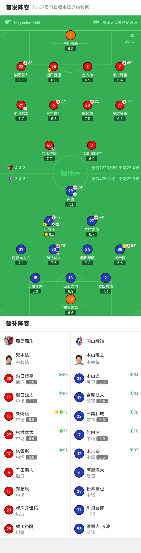 冈山绿雉2-1逆转鹿岛鹿角,江坂任建功,神谷优太破门
