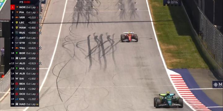 北京时间6月28日,F1奥地利大奖赛第三次练习赛结束。诺里斯全场最快,皮亚斯特里、维斯塔潘位居二三。勒克莱尔第4,汉密尔顿第5,拉塞尔第6,安东内利第7,斯特罗尔第8,角田裕毅第9,博托莱托第10。