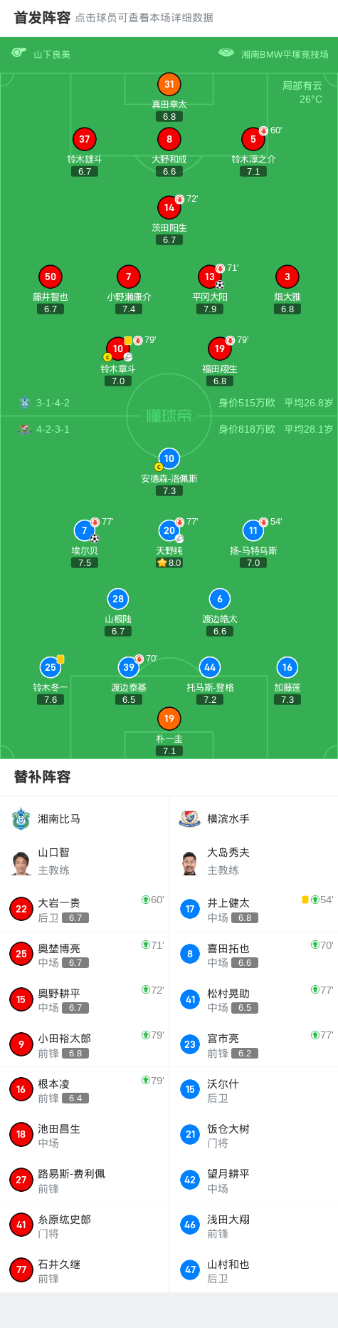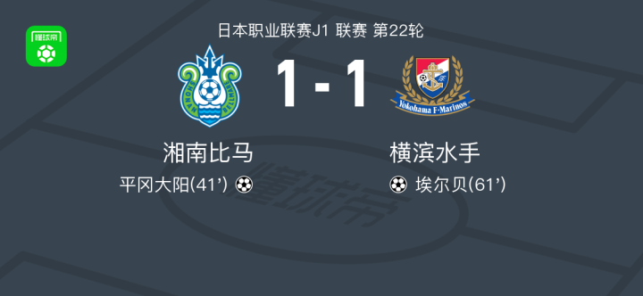 湘南海洋1-1横滨水手,平冈大阳先拔头筹,埃尔贝扳平