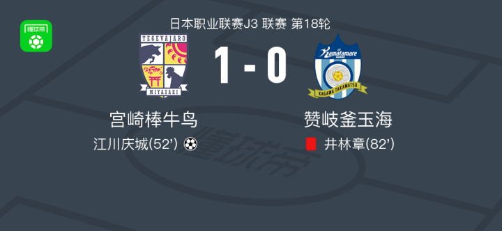 宫崎棒牛鸟1-0赞岐釜玉海,江川庆城一剑封喉