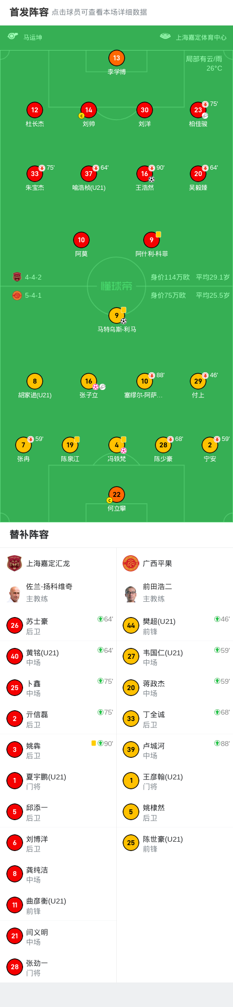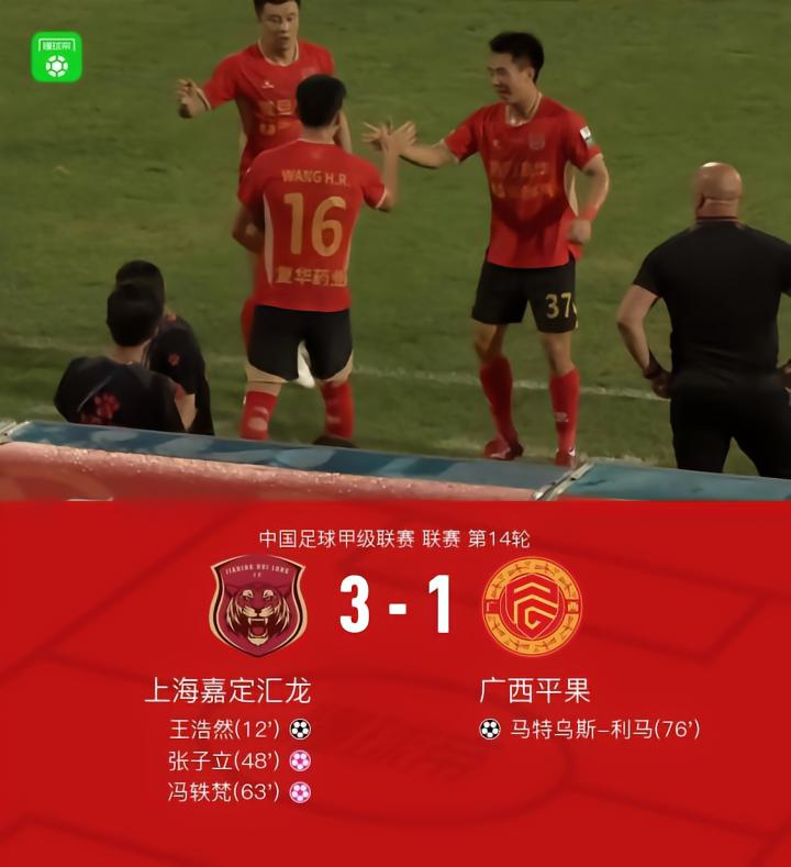 上海嘉定汇龙3-1广西平果,王浩然、吴毅臻建功,冯轶梵乌龙