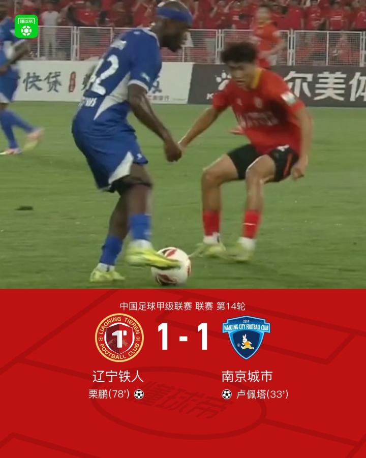 辽宁铁人1-1南京城市,卢佩塔破门,栗鹏扳平