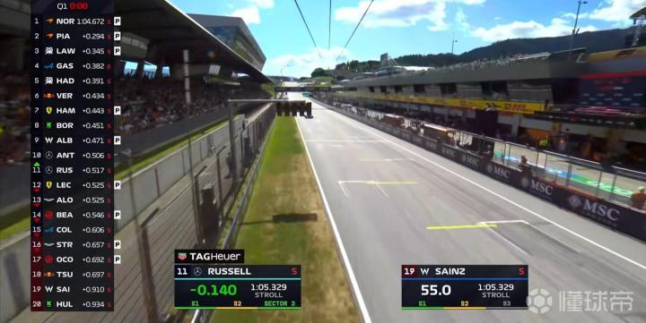 Q3首轮飞驰圈结束,诺里斯0.2秒的优势处在榜首,劳森则选择出来跑最后一圈;