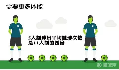 五人制比赛对于体能的要求要高于十一人制,每名球员的平均触球次数是十一人制的四倍。
