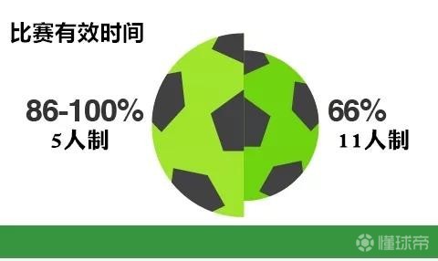 五人制比赛的有效时间可以达到86-100%,远高于十一人制。