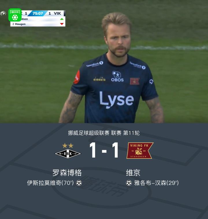 罗森博格1-1维京,雅格布-汉森破门,伊斯拉莫维奇扳平救主