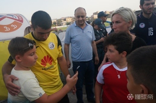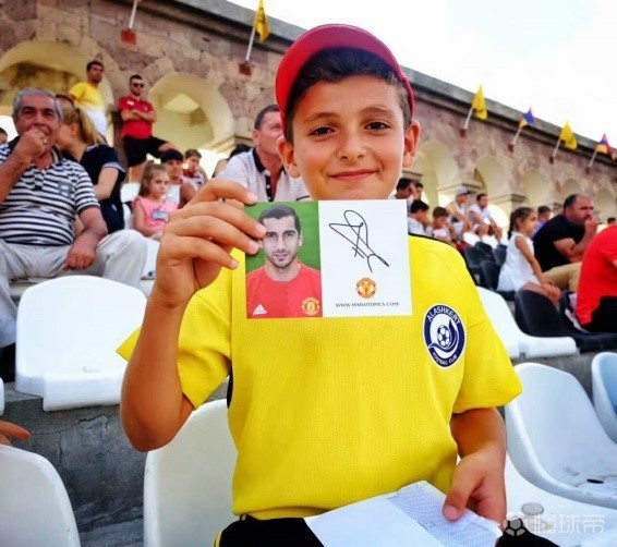 中场休息时,周围有观众注意到了我们这几个稀有的黄种人面孔,试着和我们交谈,一位女球迷转过身来和我们聊起了家常,她同我们说她的姐姐对中国和中文很感兴趣,并让我们加上了她姐姐的Facebook,还让我们教她中文,最后也主动与我们合影留念。一旁阿拉什科特的小球员们也没闲着,看见我们举着相机走近,都主动绽放出热情地笑容,展示他们为球队加油的风采。他们还用着我听不懂的语言互相呼喊着叫一位小球员从信封里小心翼翼地拿出了姆希塔良的签名照展示给我们看。姆希塔良虽然出道于他们这场比赛的对手凤凰队,但丝毫没有妨碍他成为这些小球员们的偶像,姆希塔良对他们和对亚美尼亚人的意义,无需多言。作为这个小国独立后最耀眼的球星,姆希塔良值得所有亚美尼亚足球人为他骄傲、痴狂,也深深影响着他祖国的这些孩子们。