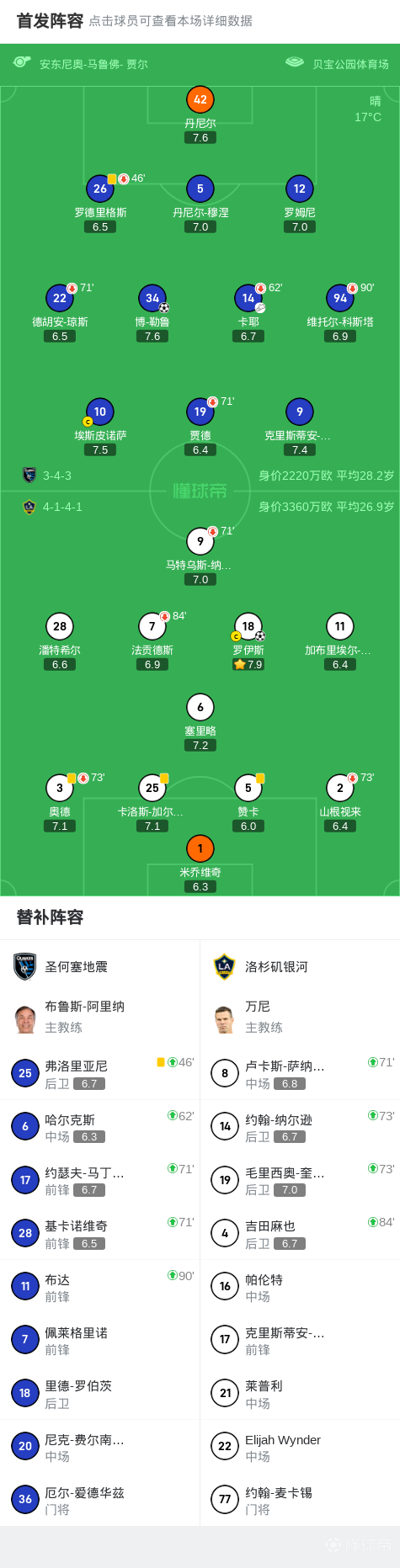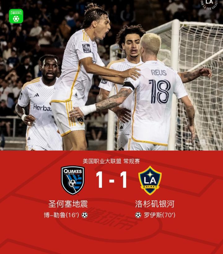 圣何塞地震1-1洛杉矶银河,博-勒鲁破僵,罗伊斯扳平比分