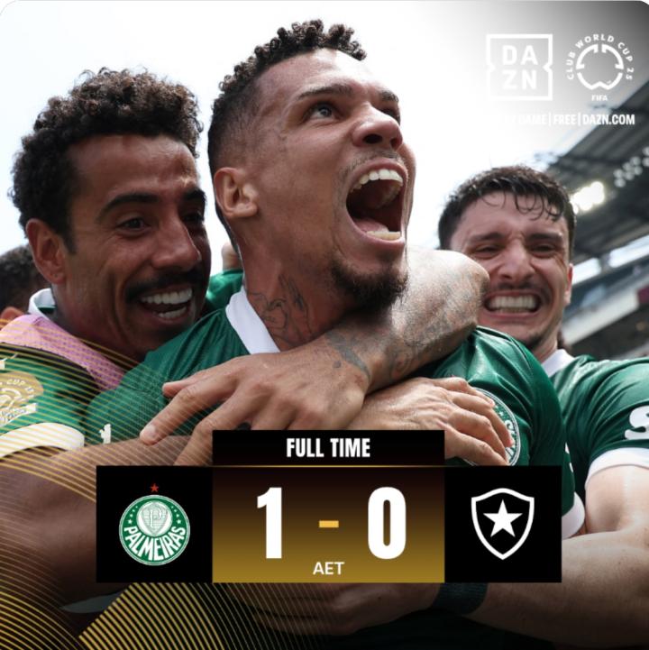 不过,在戈麦斯离场前,帕尔梅拉斯已经攻入至关重要的一球。两队在常规时间互交白卷,加时赛进行至第99分钟,保利尼奥从右侧突入禁区,过掉一名防守球员后,起左脚低射,将球送进远角,帕尔梅拉斯成功打破僵局。此后,双方均无建树,帕尔梅拉斯1-0击败博塔弗戈,率先晋级世俱杯八强。