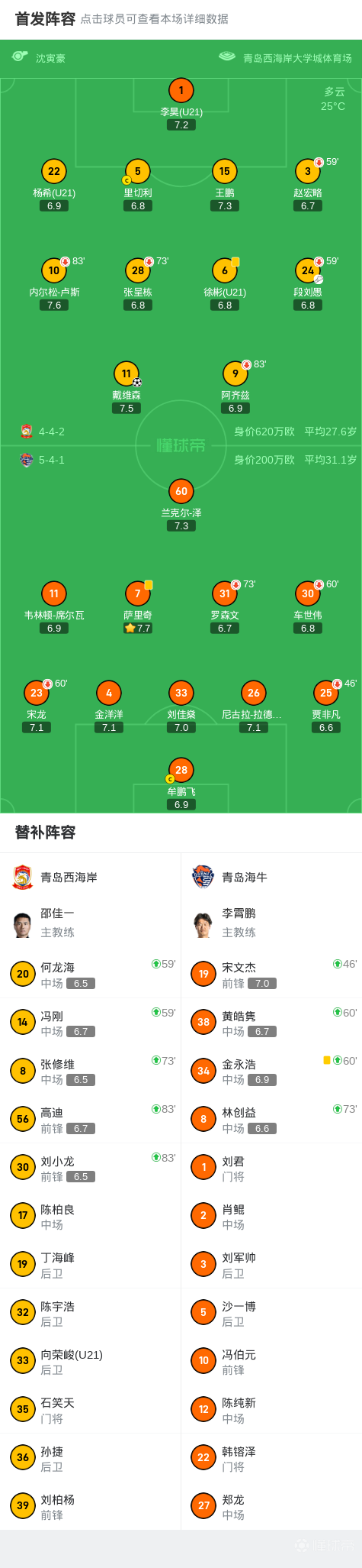 第59分钟,西海岸换人,冯刚、何龙海登场,换下段刘愚、赵宏略