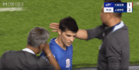 第76分钟,申花换人,累计身背3张黄牌的特谢拉被换下