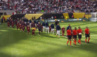 双方球员入场,比赛马上开始