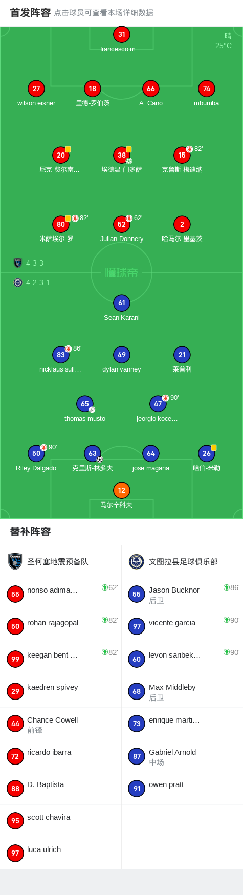 北京时间6月30日美国后备联赛,圣何塞地震预备队对阵文图拉县足球俱乐部。圣何塞地震预备队埃德温-门多萨破门。文图拉县足球俱乐部克里斯-林多夫破门。最终比分圣何塞地震预备队 5-4 文图拉县足球俱乐部。