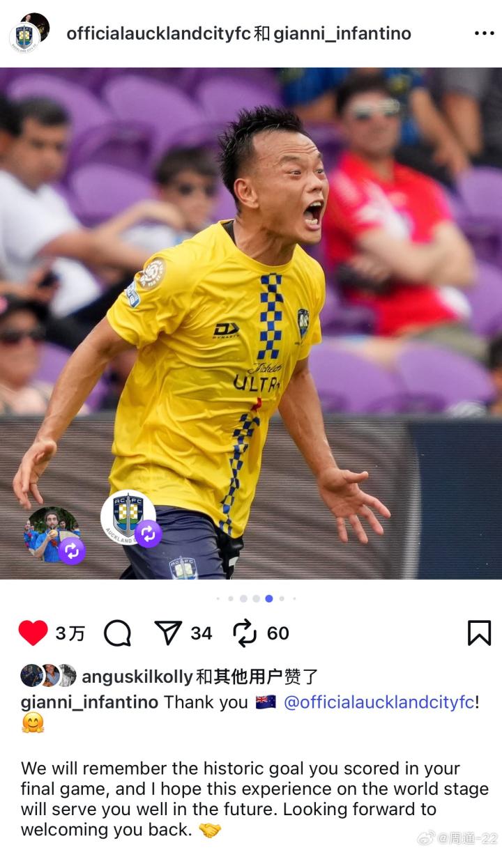北京时间6月30日,在结束世俱杯之旅后,效力于奥克兰城的中国球员周通分享了参加世俱杯的感受。