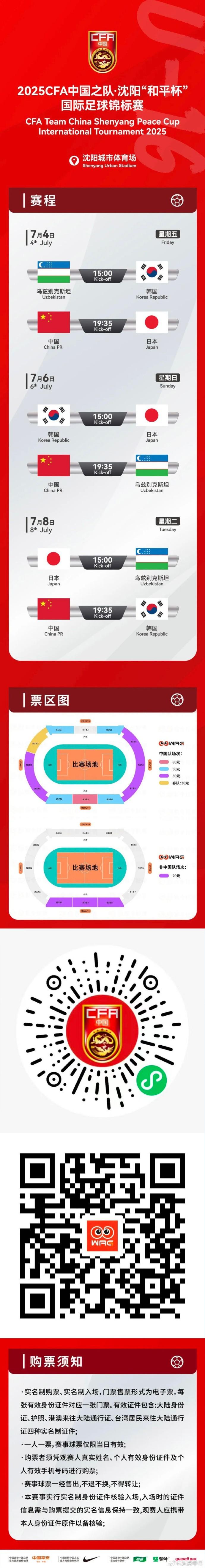 官方:沈阳和平杯门票现已开售,U16国少场次售价30-80元我是开封菜 @懂球帝2025-06-30 20:042025CFA中国之队·沈阳“和平杯”国际足球锦标赛将于北京时间7月4日至7月8日在沈阳城市体育场进行!中国U-16男足将先后迎战日本U-16男足、乌兹别克斯坦U-16男足和韩国U-16男足。在4月进行的法国蒙太古杯邀请赛中,中国U-16男足获得第四名创造了历史;5月末进行的呼和浩特四国锦标赛上,中国U-16男足延续出色表现,以2胜1平的战绩拿到了冠军。扫描二维码购票,一起来现场为中国队加油吧!展开更多