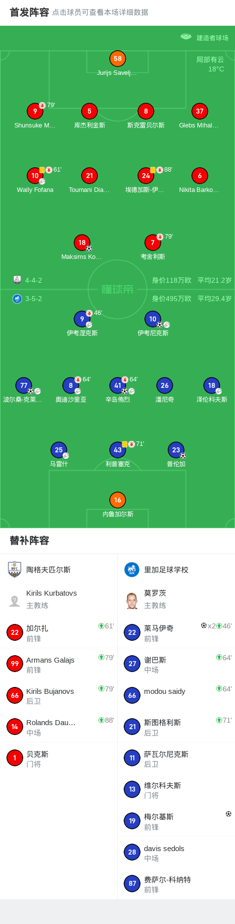里加足球学校7-1血洗陶格夫匹尔斯,莱马伊奇梅开二度,伊考尼克斯传射