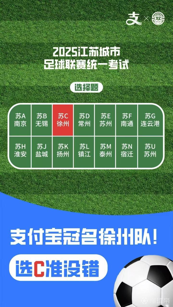 而目前名列苏超第三名的徐州队官宣获得支付宝的冠名。由于徐州的车牌号是“苏C”,海报上还颇为幽默地写上了“选C准没错”。