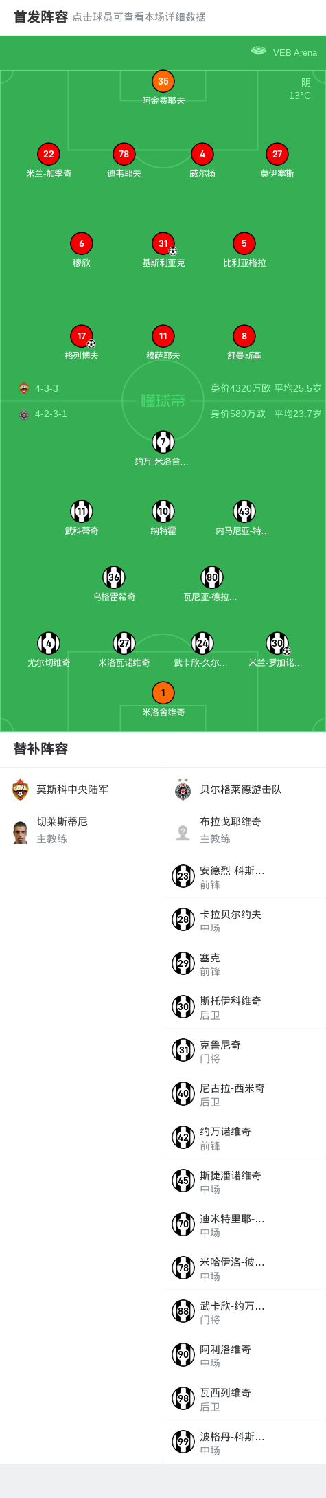 莫斯科中央陆军3-1贝尔格莱德游击队,基斯利亚克、阿莱兰德罗破门