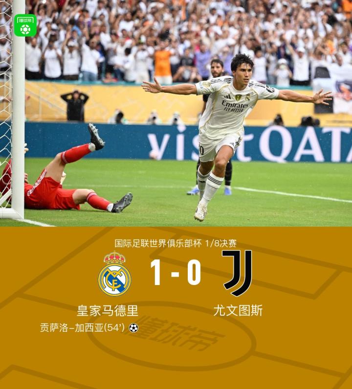 皇马1-0尤文晋级8强,贡萨洛头球制胜,姆巴佩世俱杯首秀