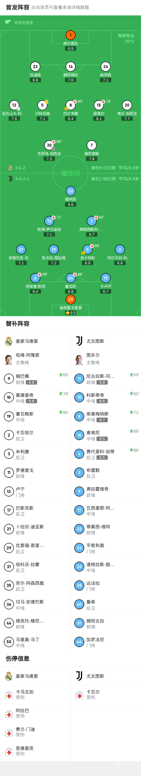 北京时间7月2日国际足联世界俱乐部杯 1/8决赛,皇家马德里对阵尤文图斯。皇家马德里由阿诺德助攻贡萨洛-加西亚头球破门,姆巴佩下半场替补登场回归。最终比分皇马 1-0 尤文。
